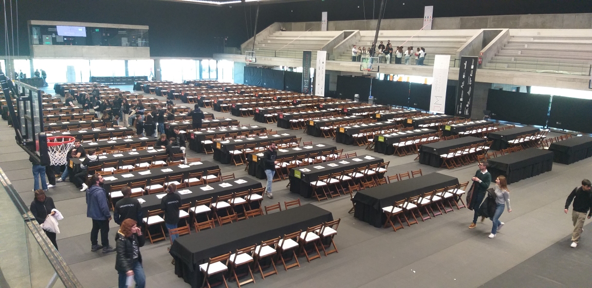 The tournament during the morningThe Portuguese Tournament of Mathematical Games started months before in several hundreds of schools, scattered thru all Portugal, with local tournaments to find what students were the best players.