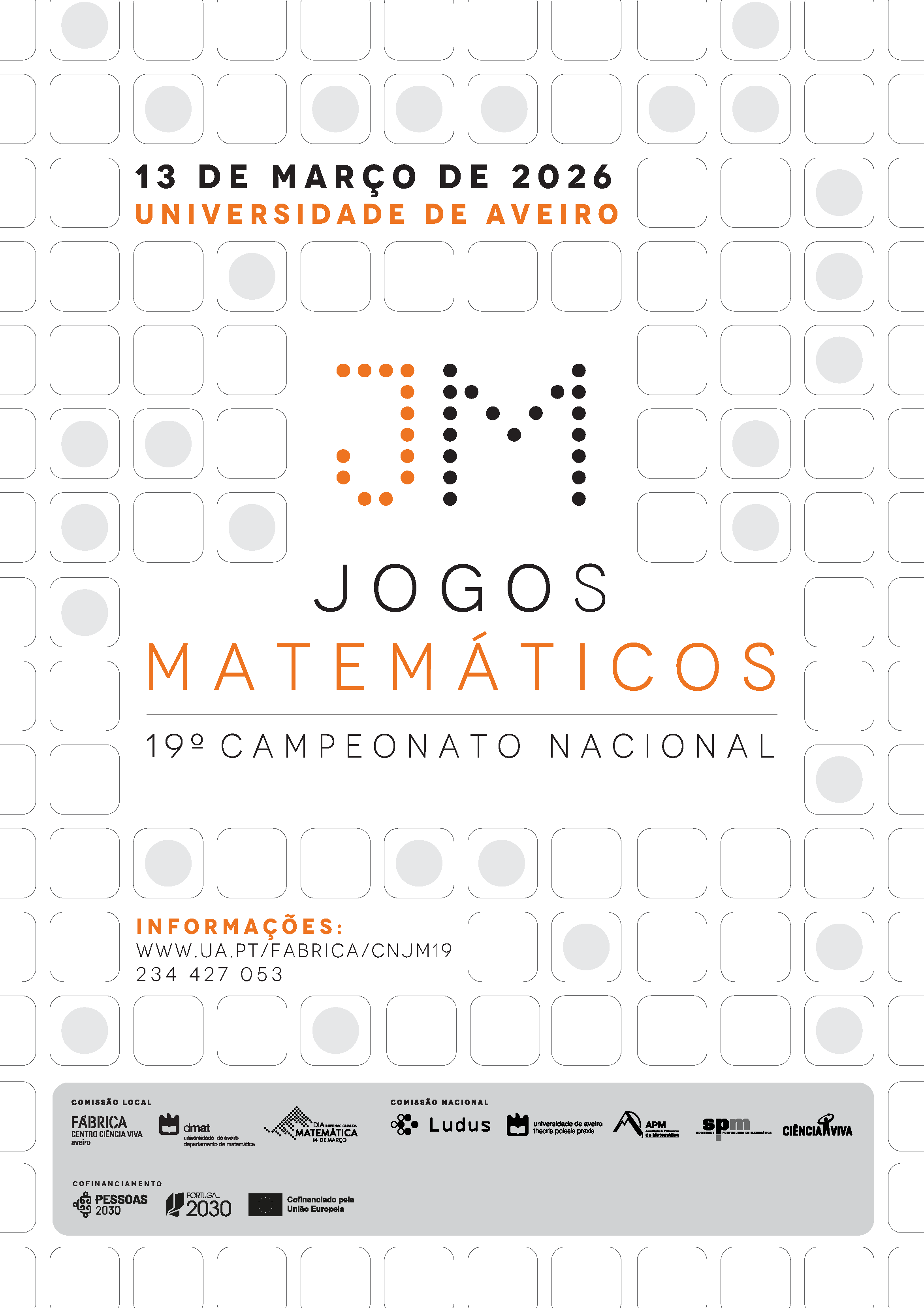 of Mathematical GamesOn March 13, 2026, around 1850 students (aged 7 to 17) from all over Portugal joined in University of Aveiro to play six abstract games. The event was organized locally by Fábrica Centro Ciência Viva de Aveiro, and the Math Department of the University of Aveiro. More information here.