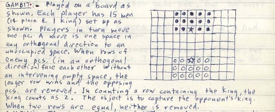 Gambit is played on a 9x11 square board with the following setup (I'm not 100% sure if it's the right one):