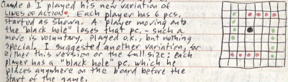 Jul 24, 1965: An hexagonal LOA variant for 2-4 playersSackson also mentions a LOA variant, designed by Soucie, called Far Away:
