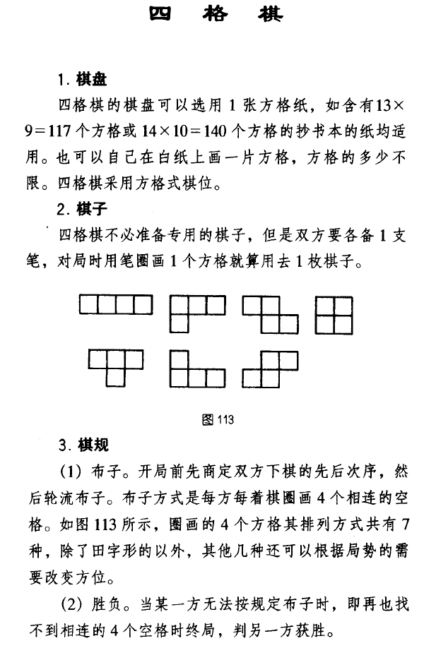 In Folk Board Games (民间棋类游戏) by Luo Jianjiang (罗鉴江 编著) there is a reference for a very similar game, but using tetrominoes (aka Tetris pieces), Four-Square Chess (四格棋):